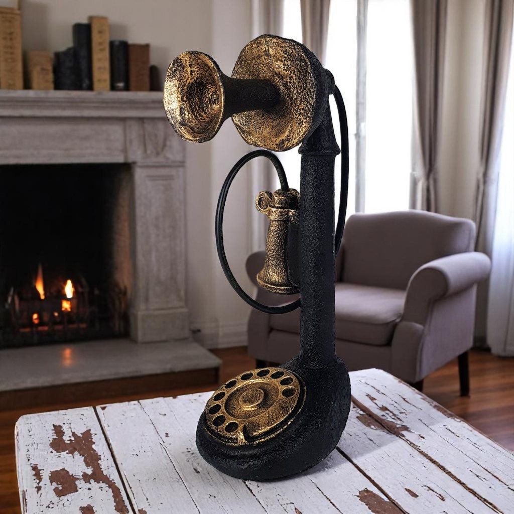 Telefone Decorativo Antigo Retro Vintage Enfeite Em Resina 29cm