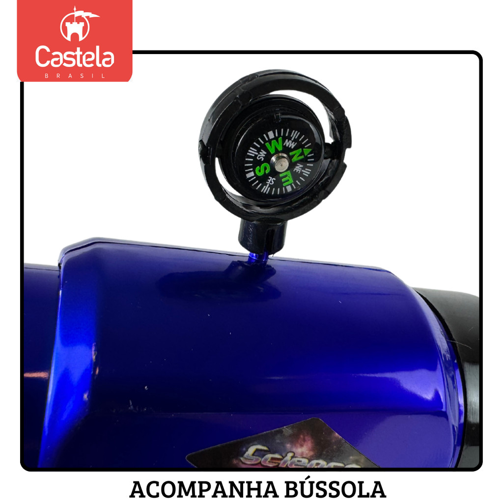 DESCRIÇÃO DO PRODUTO Desperte o astrônomo que existe em você ou na sua criança com o Telescópio Astro Castela! Ideal para iniciantes e jovens curiosos, este telescópio oferece uma experiência de observação incrível para explorar a Lua, as estrelas e outros objetos celestes. Um presente que encanta e inspira a curiosidade científica! CARACTERÍSTICAS TÉCNICAS: Conteúdo da Embalagem: 01 telescópio e 3 lentes Dimensões Aproximadas do Produto: 44cm x 22cm x 8cm(Altura x Largura x Comprimento/Profundidade). Dimensões Aproximadas da Embalagem: 46cm x 24cm x 10cm (Altura x Largura x Comprimento/Profundidade). Material/Composição: Plástico. Idade Mínima Recomendada: A partir de 8 anos Participantes: A partir de 1 pessoa Alimentação: Não se aplica Marca: Castela Referência: CBS0127 Outras informações: As cores podem variar entre as imagens mostradas acima e o produto. Imagens meramente ilustrativas. Aviso: As informações e imagens divulgadas são de total responsabilidade do fabricante/fornecedor. Produto lacrado e disponível a pronta entrega para todo Brasil! APROVADO PELO INMETRO