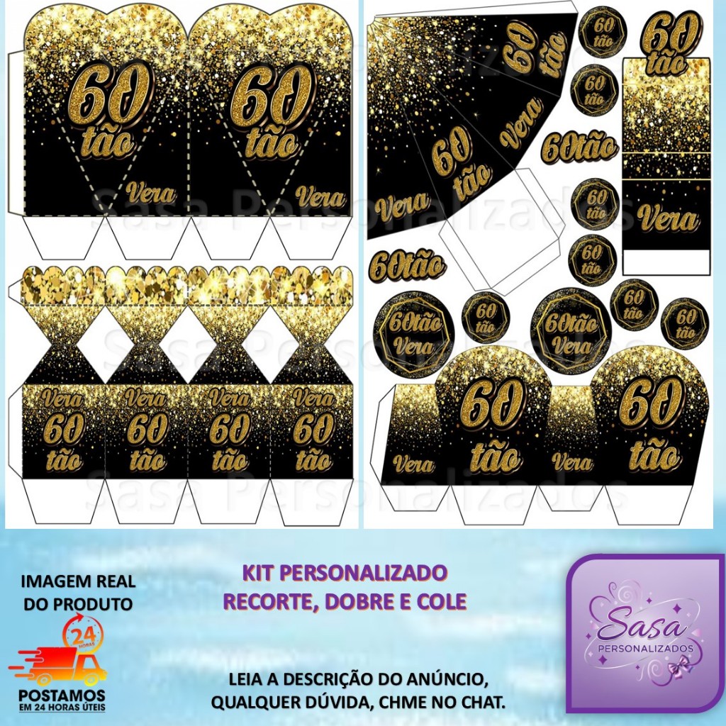 TEMA IDADE (60, 65, 70 MOTIVOS PARA COMEMORAR) LEMBRANCINHA PERSONALIZADA COM 80/160 ITENS