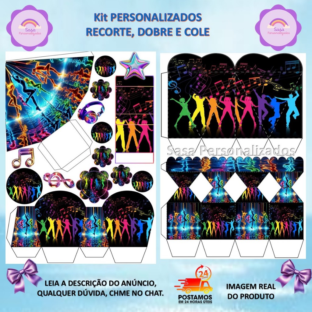 TEMA NEON, ANOS 90, ANOS 60, DANCE LEMBRANCINHA 80/160 ITENS PERSONALIZADA COM/SEM NOME