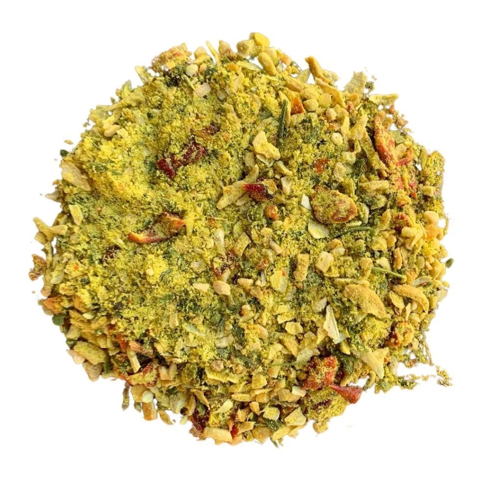 O Tempero Ana Maria é uma criação irresistível que combina cuidadosamente uma variedade de especiarias para proporcionar uma explosão de sabor em cada prato. Com uma base robusta de alho em flocos e cebola em flocos, este tempero oferece uma riqueza aromática que se acentua com a adição de cebolinha desidratada e salsa, conferindo frescor e vitalidade. O toque especial deste mix é o equilíbrio perfeito entre ervas como manjericão e orégano, que adicionam camadas de sabor complexas e deliciosas. O sabor único é intensificado com a presença de tomate em flocos, pimentão vermelho e páprica, proporcionando uma nota levemente adocicada e picante. Complementado por um toque de sal e a profundidade do caldo de galinha, o Tempero Ana Maria é uma escolha versátil que transforma pratos simples em experiências gastronômicas extraordinárias. Ideal para realçar o sabor de carnes, vegetais, molhos e sopas, este mix de temperos é a chave para uma culinária cheia de personalidade e deliciosamente equilibrada. Experimente o Tempero Ana Maria e descubra como ele eleva o seu paladar a novas alturas culinárias.