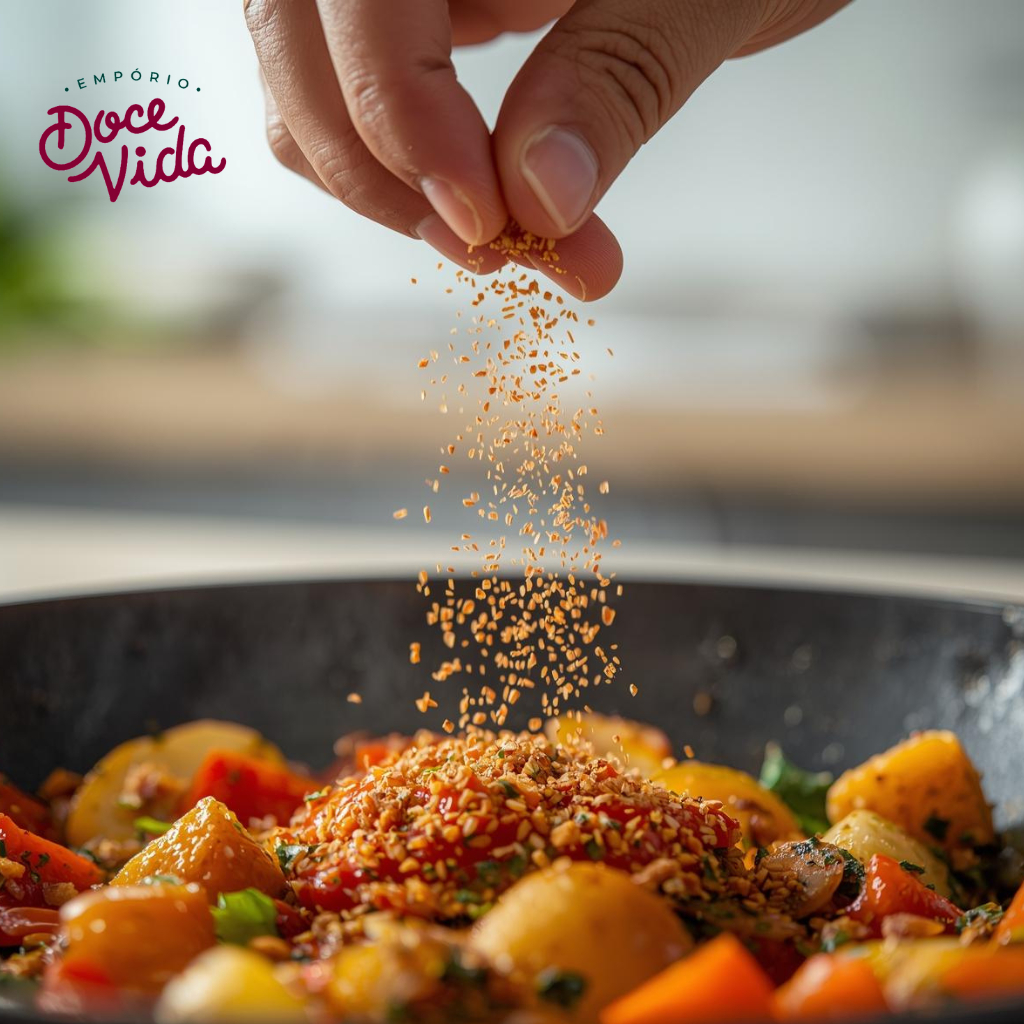 Sobre o produto: O Tempero Ana Maria Premium é aquele toque especial que deixa qualquer receita com sabor de comida caseira. Com uma combinação equilibrada de ervas e vegetais desidratados, ele oferece praticidade e aroma delicioso, perfeito para quem gosta de cozinhar com rapidez, mas sem abrir mão do sabor. Sua mistura suave funciona como um tempero completo, ideal para realçar arroz, feijão, frango, carnes, legumes, ovos e receitas rápidas do dia a dia. É um dos queridinhos da cozinha brasileira por entregar sabor equilibrado e aquele toque acolhedor de comida feita em casa. Por ter um perfil mais leve, o Tempero Ana Maria Premium combina muito bem com pratos para toda a família, desde almoços simples até receitas mais elaboradas. É perfeito como tempero para arroz, tempero para feijão, tempero para carnes e tempero para legumes, além de funcionar muito bem com alimentos preparados na airfryer. Vantagens de Uso: - Sabor suave e equilibrado; - Aroma caseiro característico; - Versátil para muitos tipos de receitas; - Prático, econômico e pronto para uso; - Ajuda a realçar cor e aroma dos alimentos. Como Usar: - Misture no arroz durante o refogado para mais cor e sabor; - Adicione no feijão na hora da fervura; - Tempere frango, carnes e legumes antes de grelhar ou assar; - Use em ovos mexidos, massas, sopas e caldos; - Perfeito para receitas rápidas na airfryer. Sugestões de Uso Criativas: - Arroz amarelinho com aroma caseiro; - Feijão do dia com sabor equilibrado; - Frango dourado na airfryer; - Legumes salteados com toque especial; - Macarrão rápido com tempero suave; - Ovos mexidos perfeitos para o café da manhã. Sabor caseiro, aroma especial e praticidade para transformar receitas simples em refeições deliciosas. Por que comprar no Empório Doce Vida? - Temperos frescos, selecionados e aromático; - Produtos enviados em embalagem reforçada; - Loja confiável, especializada em temperos e produtos naturais; - Atendimento atencioso e entrega rápida; - Qualidade premium com excelente custo-benefício. Ingredientes: Cebola granulada, alho granulado, cenoura em flocos, tomate em flocos, pimentão verde, pimentão vermelho, manjerona, manjericão, salsa, sal, caldo de galinha, glutamato monossódico. Atenção Alérgicos: Este alimento não contém glúten nem alérgenos em sua composição. No entanto, pode conter traços de glúten, trigo, soja, ovos, peixe, crustáceos, pimenta, gergelim e oleaginosas devido ao processamento em local compartilhado.