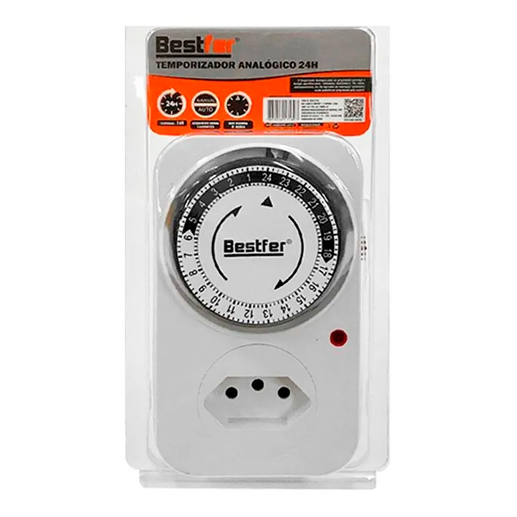O Temporizador Analógico 24h Bivolt Bestfer é a solução ideal para quem busca praticidade e eficiência no controle de equipamentos elétricos. Com sua capacidade de programação de até 24 horas, ele permite uma gestão fácil do consumo energético. Compatível com 110V e 220V, oferece versatilidade para diferentes ambientes e aplicações. Este temporizador é perfeito para automatizar o funcionamento de eletrodomésticos, iluminação e sistemas de segurança. Seu indicador LED facilita a visualização do status, proporcionando maior segurança e conveniência ao usuário. Vantagens: - Tipo de Temporizador: Analógico, ideal para programação simples. - Bivolt: Compatível com 110V e 220V. - Programação até 24 horas: Controle eficiente do uso de energia. - Modos Automático e Manual: Flexibilidade no controle dos aparelhos. - Indicador LED: Luz que indica o funcionamento do dispositivo. - Proteção contra Sobrecargas: Maior segurança e durabilidade. Especificações técnicas: Marca: Bestfer Tipo: Temporizador analógico Voltagem: Bivolt (110V/220V) Frequência: 50/60 Hz Saída: 1 tomada padrão Conteúdo da embalagem: 1 Temporizador Analógico 24h Bivolt Bestfer Garantia: - 3 meses de garantia
