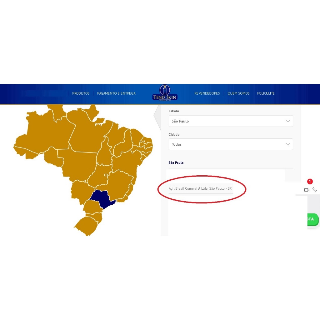 HOMOLOGADO APROVADO REGISTRO ANVISA: 25351.585812/2015-85 SOMOS REVENDEDOR OFICIAL! Tend Skin 118ml - Loção para Foliculite e Pelos Encravados - Área de aplicação: 1. Rosto 2. Pescoço 3. Virilha 4. Axilas 5. Pernas 6. Nádegas 7. Couro cabeludo E todas as áreas depiladas ou raspadas por homens e mulheres. - Forma de utilização: Certifique-se de que a pele esteja seca antes de aplicar. No começo, aplique a loção Tend Skin com um algodão duas vezes por dia. Aplique à noite, antes de dormir e repita pela manhã, após o banho, barbear ou depilar, se for o caso. Não o remova após a aplicação. Pode-se utilizar cremes e perfumes sobre o produto, uma vez seco. Número de registro na Anvisa: 25351.585812/2015-85