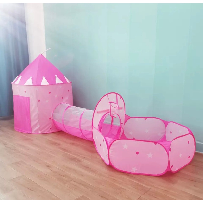 Tenda Toca Túnel 3x1 Barraca Castelinho C/ Cercadinho Piscina Bolinha e Cesta Para Basquete Infantil