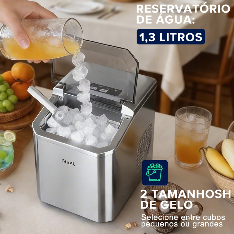 Tenha Gelo em 7 Minutos! Máquina Portátil 26Lbs, 2 Tamanhos, Silenciosa-VISTA