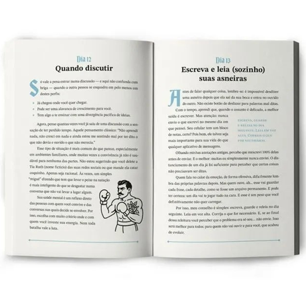 DESCRIÇÃO Tenha Pressa de Viver Bem é um livro que reúne 365 reflexões breves — cada uma com apenas um minuto de leitura — inspiradas na filosofia estoica para te ajudar a enfrentar desafios como procrastinação, insegurança, comparação tóxica e crise de identidade. Organizado para ser prático e direto, o livro incentiva você a agir diariamente com foco, disciplina e responsabilidade emocional, provando que a vida plena começa com pequenas escolhas consistentes. Ideal para quem deseja transformar sua rotina sem complicação, essa obra combina sabedoria antiga com linguagem moderna e objetiva, motivando o leitor a desacelerar mentalmente enquanto acelera sua maturidade e clareza emocional. FICHA TECNICA Título: Tenha Pressa de Viver Bem Autor: Lucas Pit Money Editora: Maquinaria Editorial Formato: Brochura Páginas: 384 Peso: 300 g ISBN: 9788594484987 PALAVRAS-CHAVE tenha pressa de viver bem, lucas pit money, filosofia estoica, reflexão diária, vida intencional, 365 textos estoicos, disciplina emocional, foco pessoal, livro motivacional, texto de 1 minuto