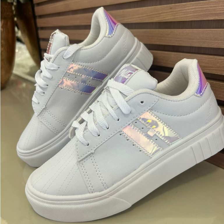 Tênis 34 ao 40 Feminino Plataforma Com Listras Ouro Holografico