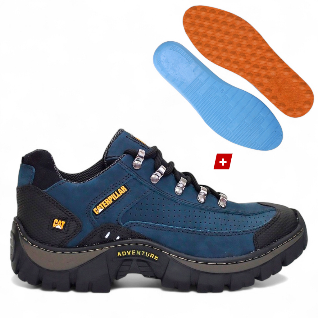 Tenis Bota Caterpillar CAT Masculino Adventure Trilha de Couro Ecológico Costurado Antiderrapante Confortável + Palmilha