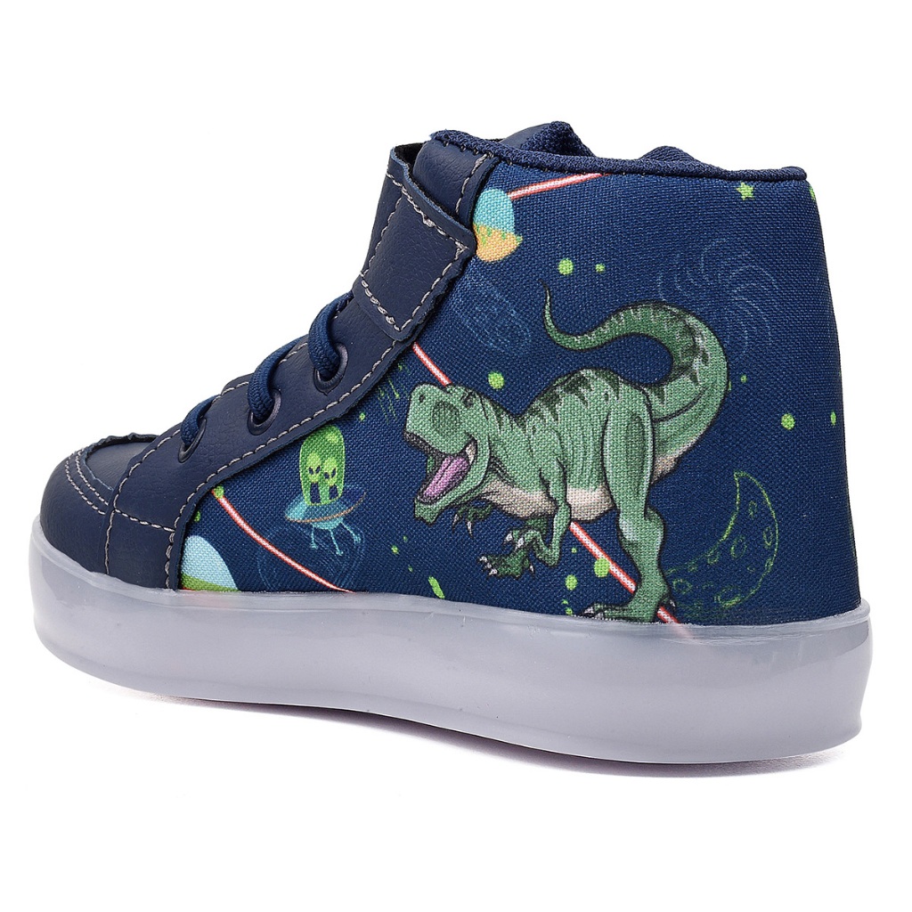 Tenis Botinha Infantil Luzinha De Led Dinossauro + Mochila + Chinelo + Oculos + Relogio