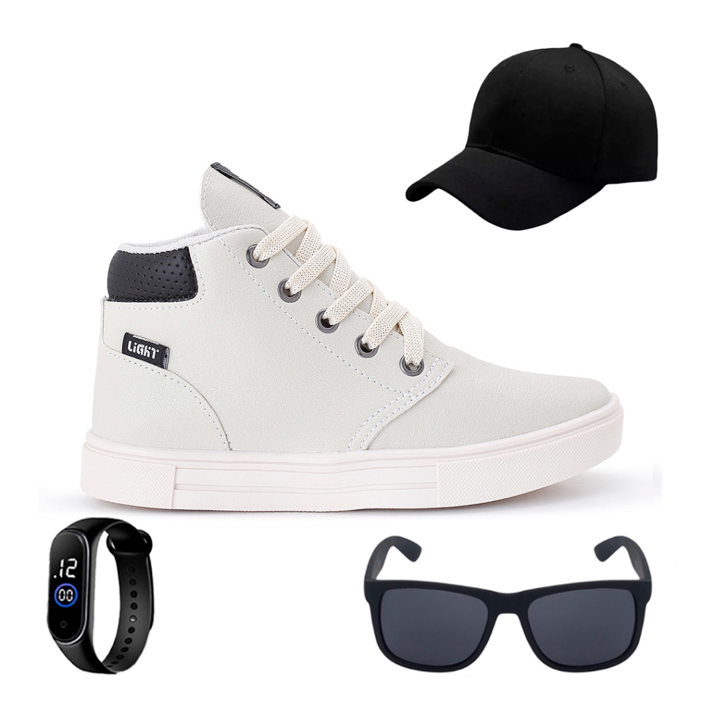 Tenis Botinha Infantil Meninos Casual Cano Alto Confortavel + Bone Oculos Relogio