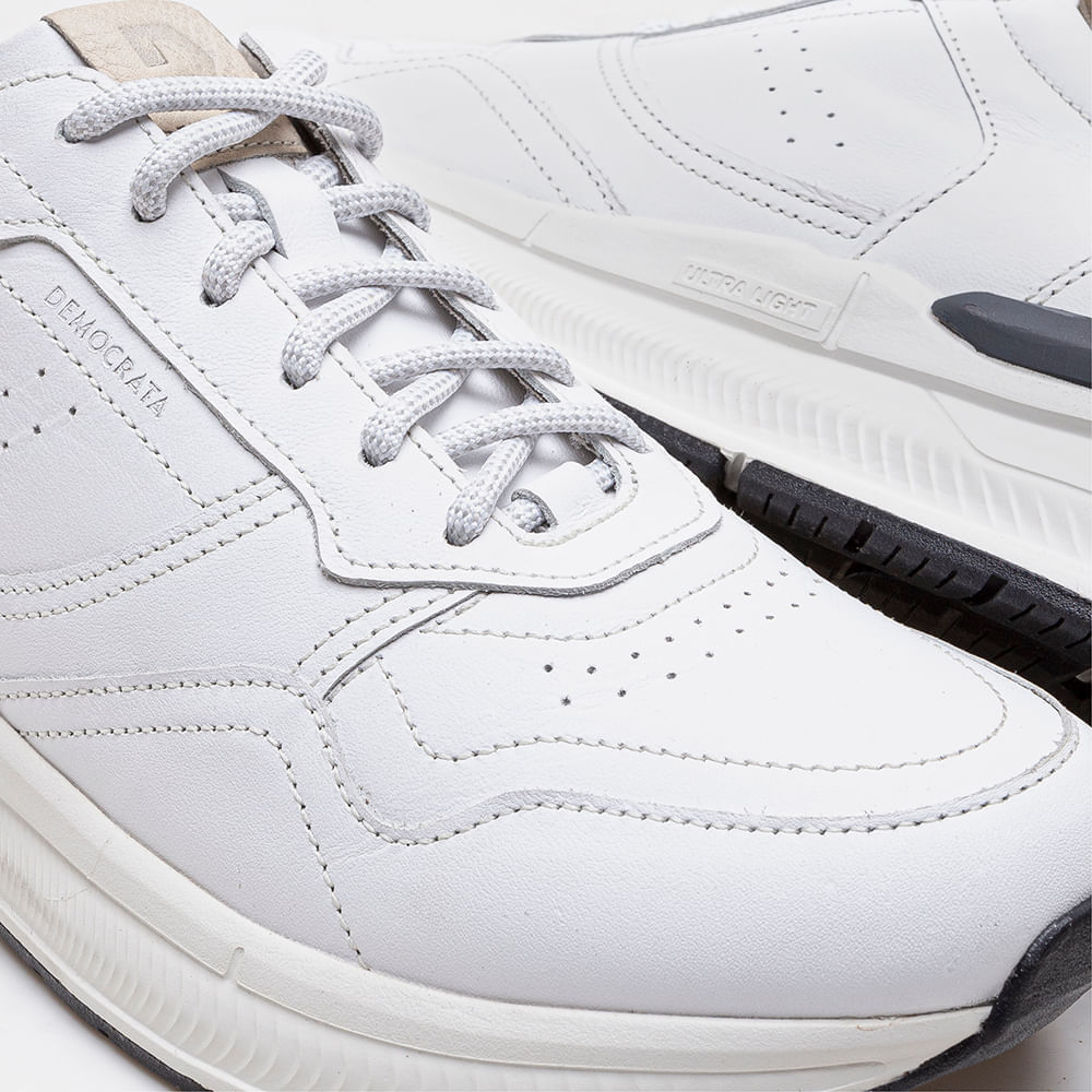 O tênis de Couro Branco Denim Brad Ultra Light é um produto tecnológico e moderno. Confeccionado em couro na cor branco, o fechamento é em cadarço de amarrar, bico arredondado e o cabedal possui recortes no couro. O solado é composto de EVA, detalhe da logo da marca na lateral, língua e no solado. Contém puxador no calcanhar e a palmilha é feita de P.U. Este modelo contém a tecnologia Ultra Light. Material: CouroSolado: EVAFechamento: CadarçoEstilo: CasualAltura do Salto: 4,5cm