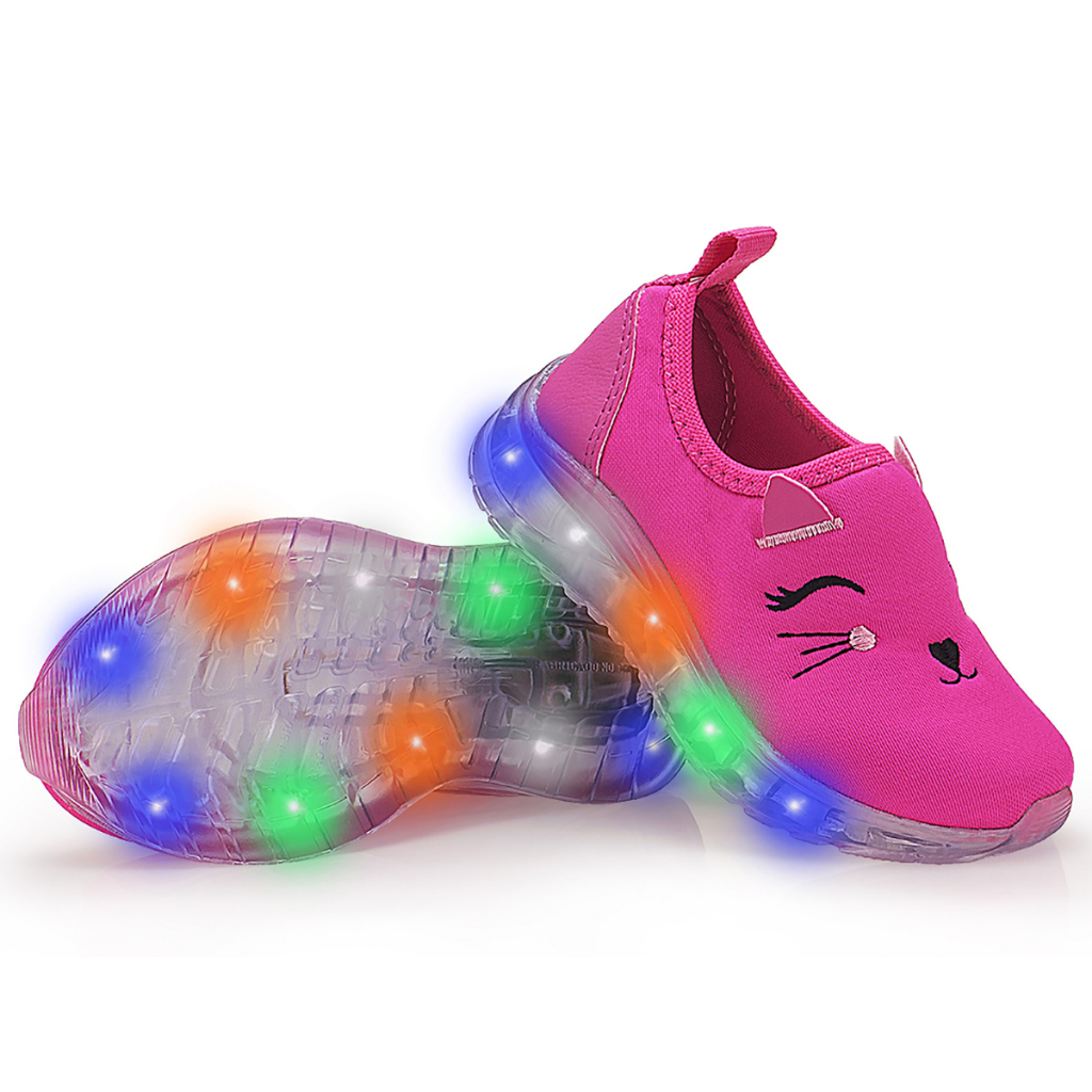 Tênis Calce Fácil Infantil Feminino Com Led Super Macio Linha Premium