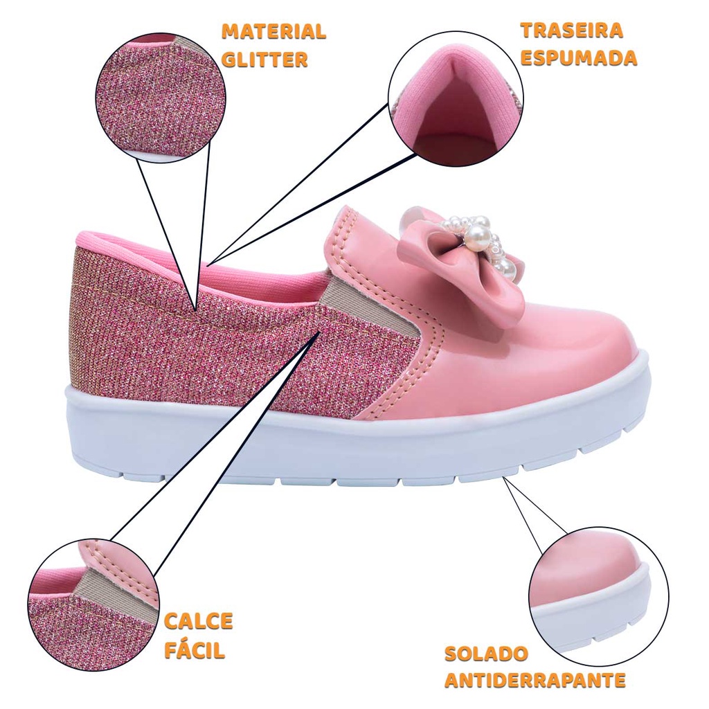 Slip on é de longe um modelinho super confortável e mega estiloso! Com cores lindas, o laço pérola tem todo charme que os pezinhos precisam na hora de compor um look bem despojado. • Detalhe em laço pérola • Acabamento em glitter • Modelo leve e confortável • Calce fácil flexível • Sola antiderrapante Tipo de Produto: Tênis Slip On Ocasião/Estilo: Casual Material: Verniz Material Interno: Têxtil Material da Sola: TR emborrachado Nós da Pópidi cuidamos com carinho da relação pré e pós-venda, afinal a satisfação de nossos clientes é muito importante para nós! Atendimento: Segunda à sexta: 07:00 às 18:00 Sábado: 09:00 às 13:00 TABELA DE MEDIDA 20 ----------- 13,7cm 21 ----------- 14,5cm 22 ----------- 15,0cm 23 ----------- 15,5cm 24 ----------- 16,1cm 25 ----------- 17,0cm 26 ----------- 17,6cm 27 ----------- 18,1cm COMO MEDIR Coloque o pé em cima de uma folha de papel e risque em volta dele com um lápis ou caneta. Meça o comprimento do topo até a base do contorno e adicione 0,5 cm de folga. LIMPEZA E CONSERVAÇÃO Evite usar substâncias abrasivas como álcool, detergentes ou solventes nos calçados. Nunca os mergulhe na água, os deixe de molho ou lave na máquina. A secagem dos produtos deve ser feita à temperatura ambiente e na sombra, nunca no sol ou em máquinas. SOBRE A EMPRESA Visão Estar em constante expansão e inovação, de uma forma consistente e arrojada. Missão Proporcionar o bem estar dos nossos clientes, satisfazendo-os em um ambiente agradável e cortês com produtos a preços justos e de qualidade. Valores Respeito, Dedicação, Conexão e Atitude. Boas compras e volte sempre!!!