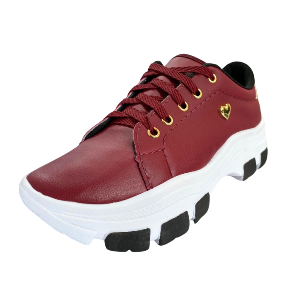 Tênis Casual Feminino Plataforma Vermelho Estiloso Macio Conforto Leve e Super