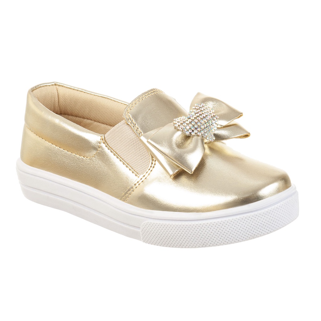 Tênis Casual Infantil Feminino Iate Slip-on Menina Laço Brilho Strass Confortável Moda Blogueira Menina Calce Fácil Leve