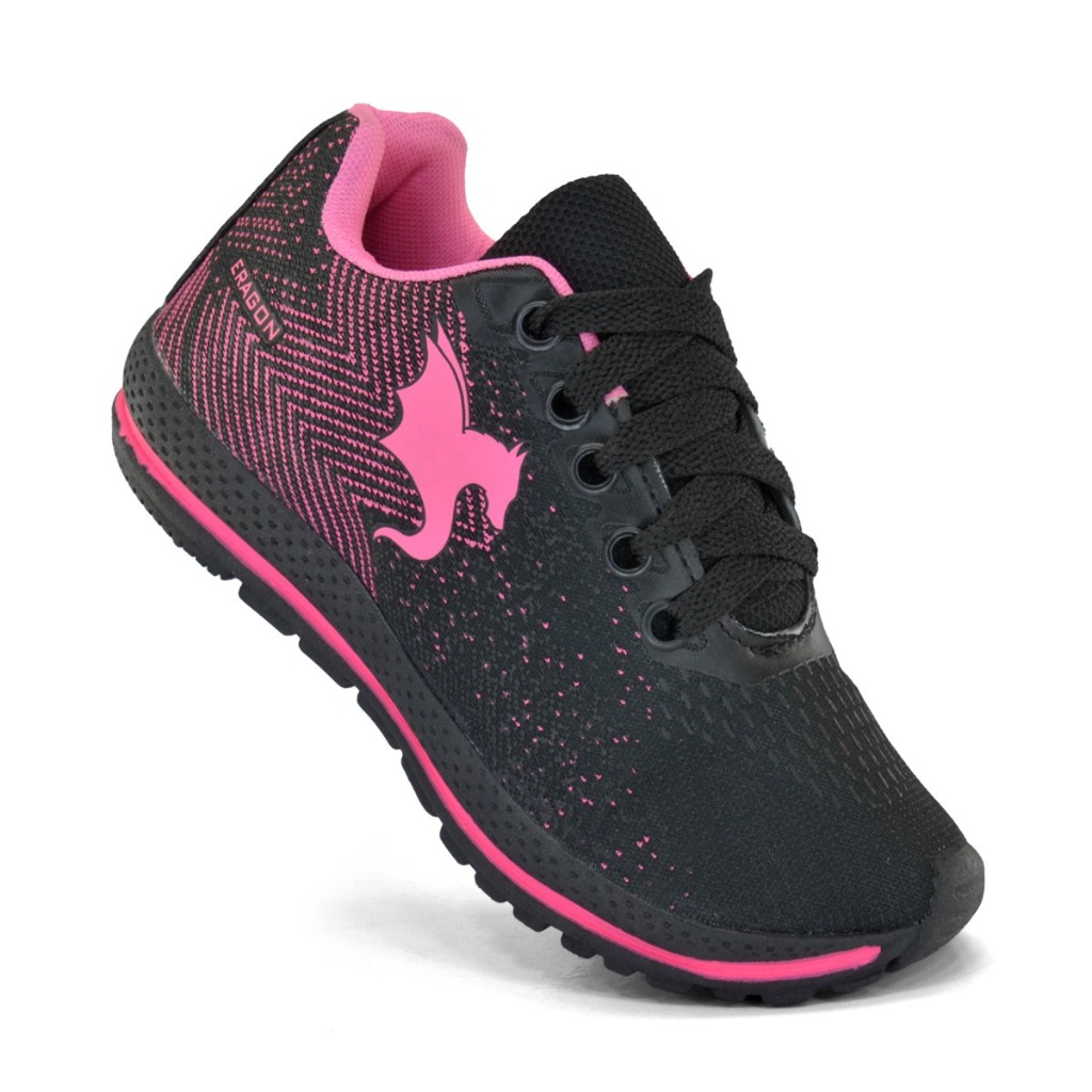 Tênis Casual Infantil Meninas Super Leve Feminino Preto Pink SL