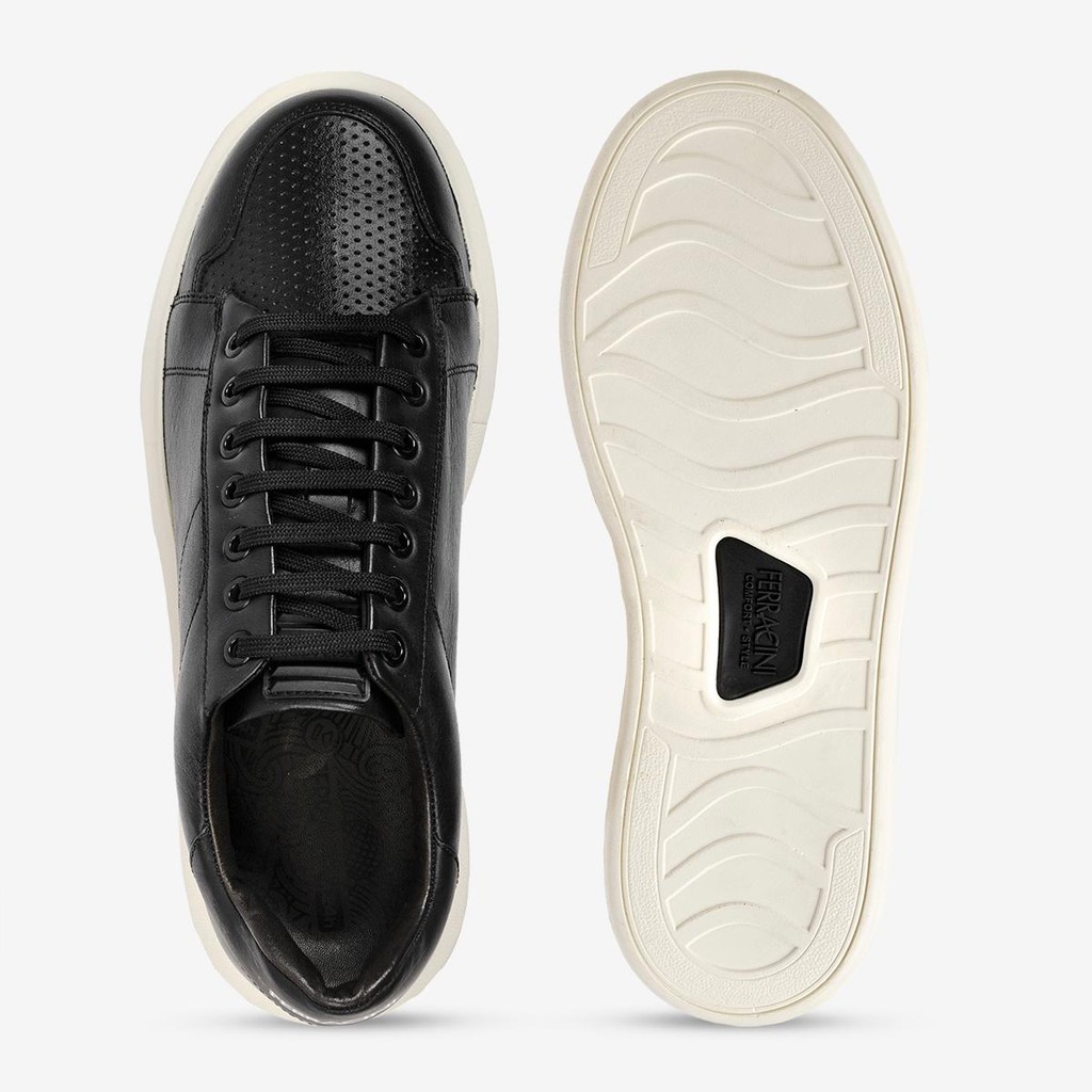 Tênis Casual Masculino Couro Ferracini Fechamento Cadarço Impulse Preto 7613-570A