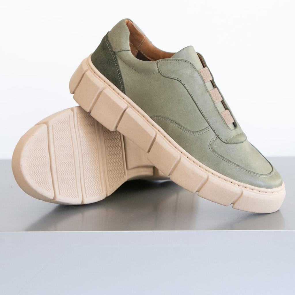 Tênis Couro Legítimo Verde Moderno Confortável Versátil Tratorado Kifer Shoes