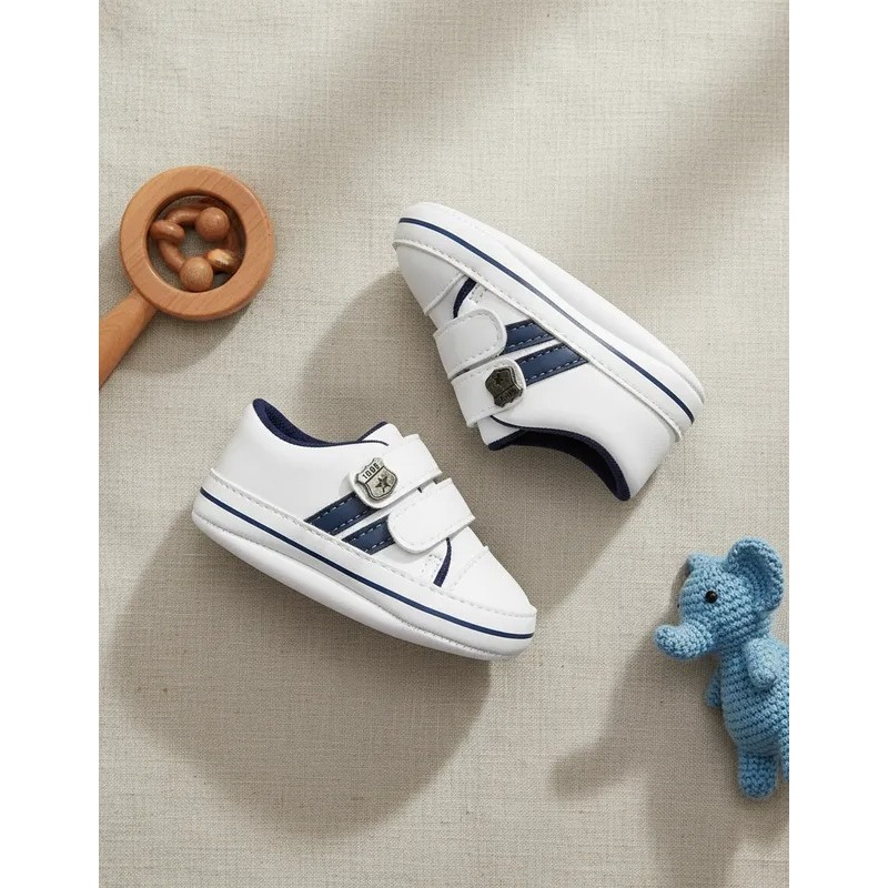 Tênis de Bebê Menino Sapatinho de Bebê Masculino Com Placa Metal Tira Lateral