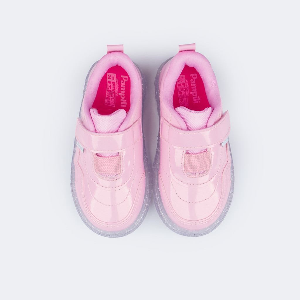 Doçura e conforto em cada passinho! Delicado e cheio de estilo, esse tênis infantil é perfeito para iluminar os looks das pequenas.Seu acabamento em verniz adiciona um toque encantador, enquanto os fechos de contato e elástico proporcionam um calce fácil e prático para o dia a dia. O bordado lateral com coração icônico da marca completa o design com um detalhe moderno. O solado transparente, além de antiderrapante, conta com LEDs que acendem em diferentes sequências, tornando cada passo ainda mais divertido e cheio de luz. A palmilha anatômica com forro absorvente proporciona conforto extra, garantindo bem-estar em todas as aventuras das pequenas. Aposte! Combine comroupaseacessóriospara um visual fofo, moderno e cheio de brilho! * Led não recarregável;* O prazo de duração do led é de 4 meses em média,mas, pode variar de acordo com o modo e frequência de utilização do calçado;* As luzes de led não são resistentes à água, limpar apenas com pano úmido e sabão neutro;* O término da bateria não caracteriza defeito de fabricação do produto, não justificando a troca.