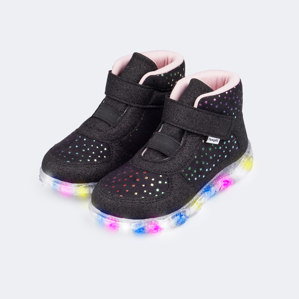 Tênis de Led Infantil Feminino Aveludado Preto Pampili