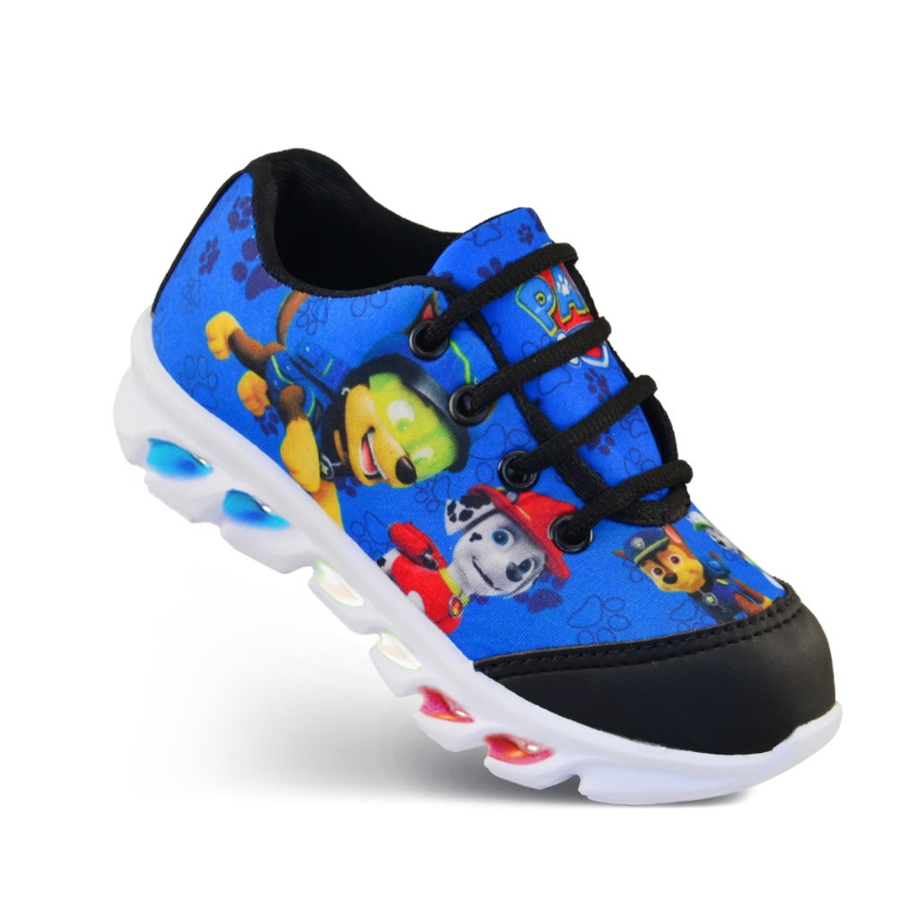 Tênis de Led Infantil Masculino Patrulha Canina com Luzinhas Meninos mais Mochila com Relogio e Oculos presente natal