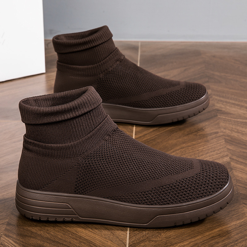 Tênis Esportivos Casuais de Cano Alto para Casal, Cabedal em Flyknit, Sola Macia em EVA, Respirável, Antiderrapante, Tam