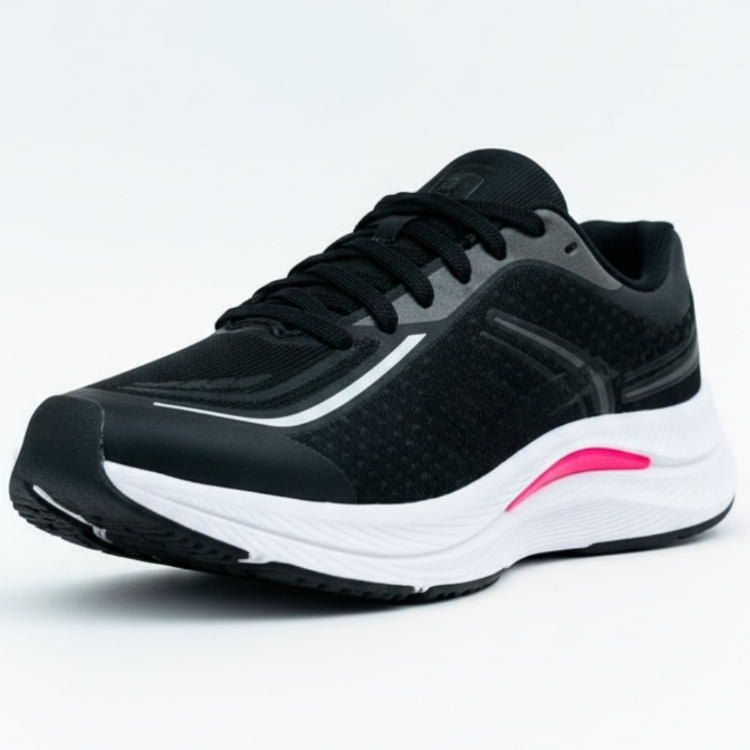 Seja no treino leve, na caminhada do dia ou naquele corre pela cidade, este tênis entrega conforto imediato e suporte onde você mais precisa. O cabedal em mesh mantém a ventilação constante, enquanto a entressola em espuma espessa absorve cada passo para uma sensação macia do início ao fim. O clip discreto no calcanhar ajuda na estabilidade e o solado de borracha garante tração no asfalto e no piso da academia. Com design preto minimalista e entressola branca, ele combina com qualquer look — desempenho sem abrir mão do estilo. Amortecimento contínuo que reduz o impacto Cabedal em malha respirável, pés sempre arejados Estabilizador no calcanhar para passada segura Solado de borracha com excelente aderência Ajuste firme com cadarço e calce fácil