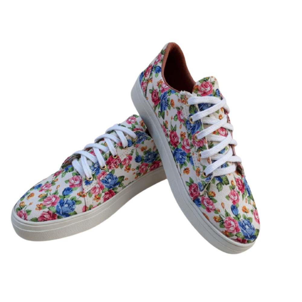 tênis feminino bege floral sapatênis confort casual yone