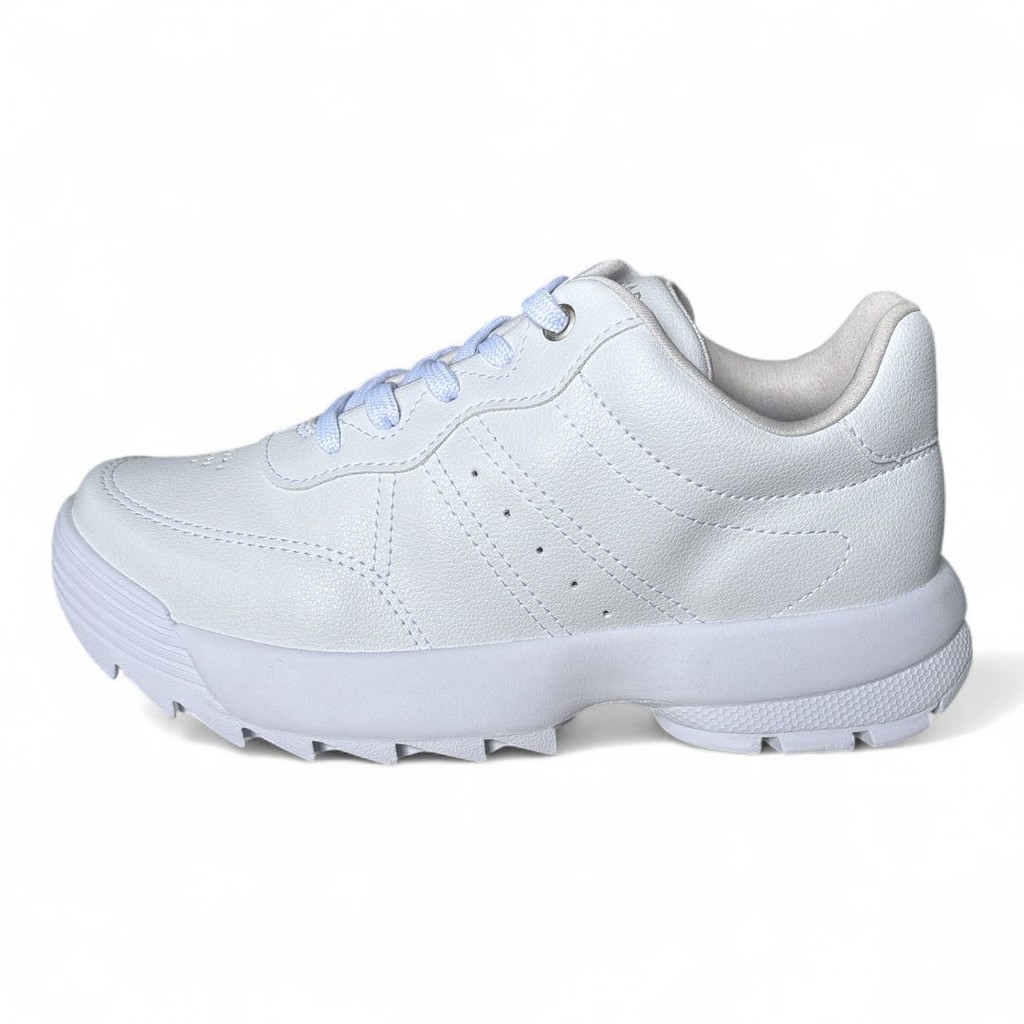 Tênis Feminino Branco Sintético – Forro Bactericida e Solado Tratorado Antiderrapante Descrição O tênis feminino branco é um clássico que nunca sai de moda. Produzido em material sintético resistente, ele combina praticidade e estilo em um só calçado. O forro bactericida garante mais higiene e frescor para os pés, enquanto o solado tratorado antiderrapante proporciona segurança e firmeza ao caminhar. Versátil e moderno, é ideal para o dia a dia e composições fashion. Detalhes do Produto Material: Sintético de alta qualidade Forro: Bactericida, que oferece mais higiene e proteção Solado: Tratorado em borracha antiderrapante Fechamento: Cadarço ajustável Palmilha: Macia e anatômica para maior conforto Cor: Branco clássico Estilo: Urbano, casual e atemporal Sugestão de Moda O tênis branco é peça-chave no guarda-roupa feminino. Combine com jeans de diferentes cortes, saias midi ou até vestidos leves para criar um contraste moderno e estiloso. Também funciona em looks monocromáticos, trazendo sofisticação ao visual casual. Sugestão de Uso Ideal para o dia a dia, trabalho casual, faculdade, passeios e viagens. Confortável e versátil, é perfeito para quem deseja unir estilo e praticidade. Cuidados e Limpeza Limpar com pano úmido e sabão neutro Não utilizar máquina de lavar ou secar Secar sempre à sombra em local ventilado Guardar em local seco e arejado, protegido da luz solar direta