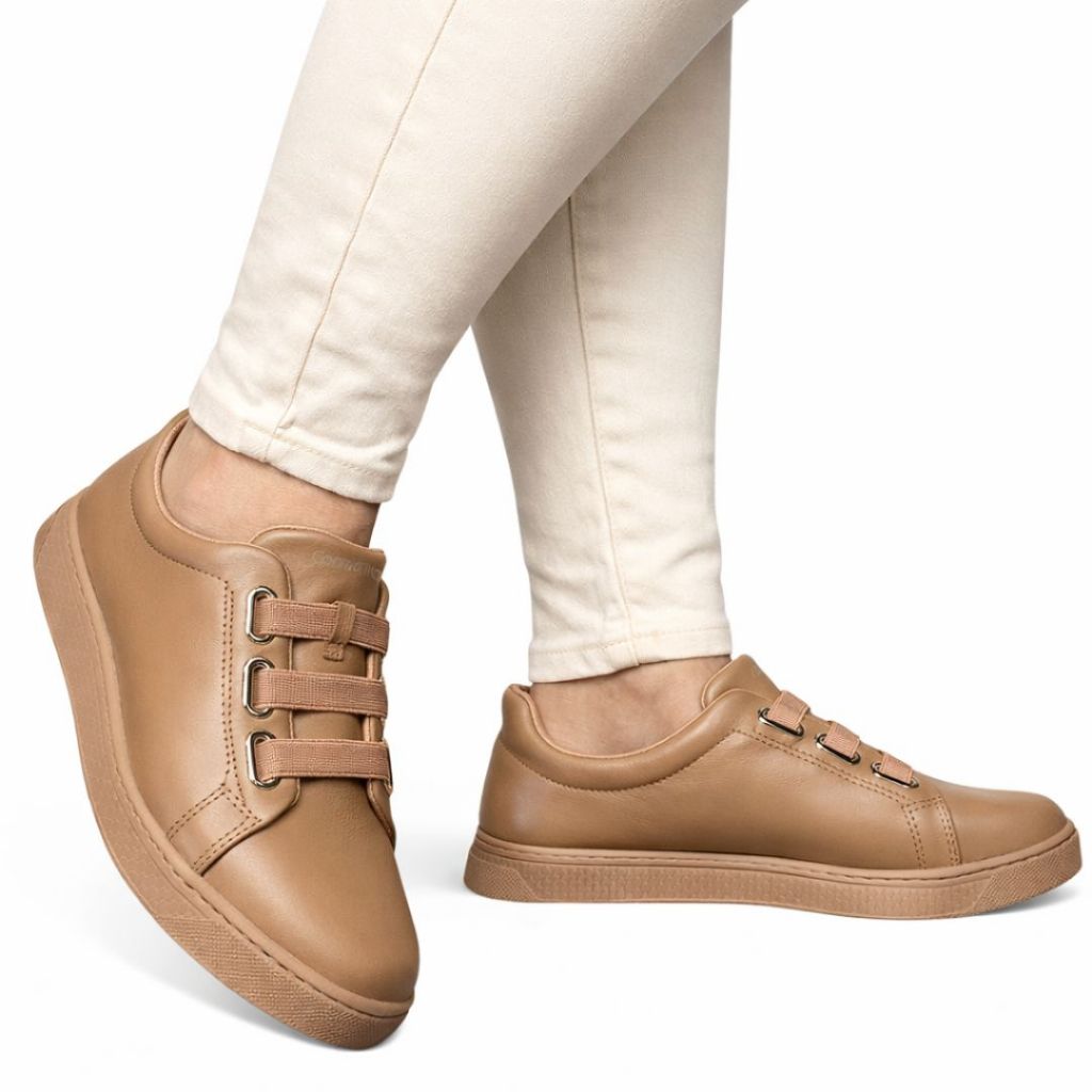 Tênis Feminino em Couro Confortável Casual Ajuste com Elástico Comfortflex 2565308