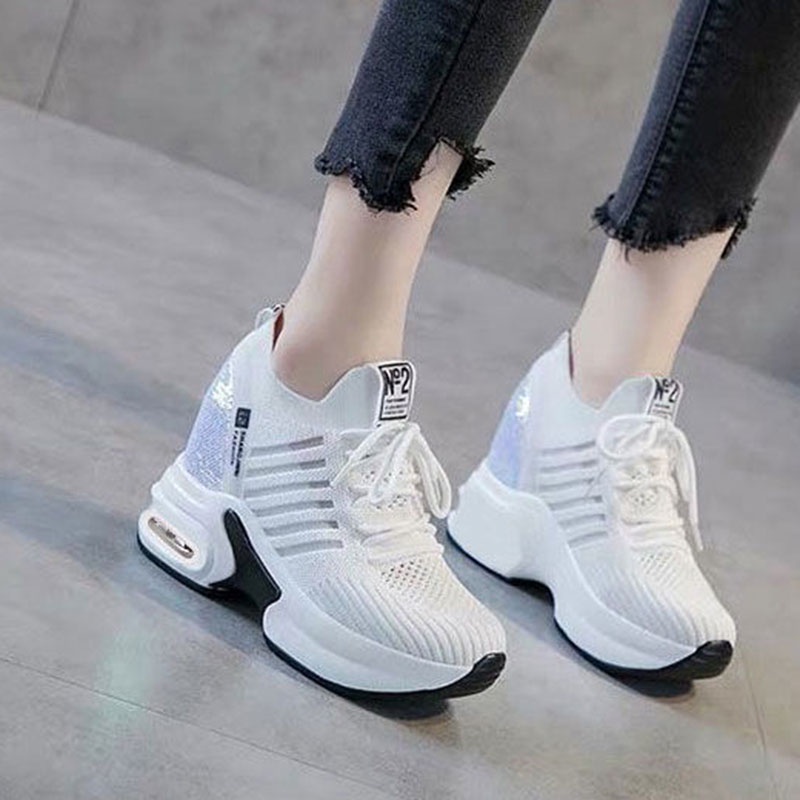 Tênis Feminino IELGY Estilo Coreano Combina Com Tudo De Sola Grossa De Malha De Vento Doce