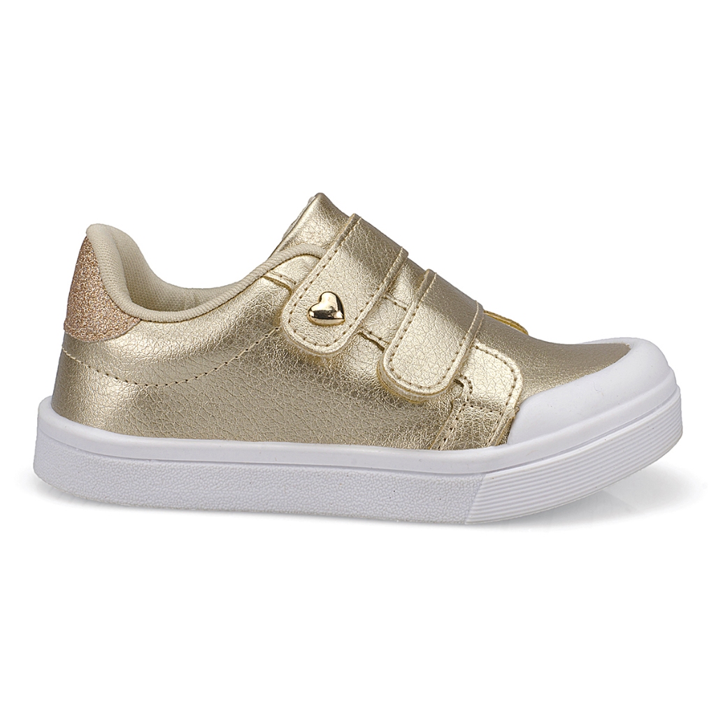 Encante sua pequena com este tênis infantil feminino em material sintético dourado de alta qualidade, super macio, confortável e com um brilho encantador que chama atenção em qualquer ocasião. Com acabamento perfeito e costuras impecáveis, ele é durável, elegante e pronto para acompanhar todos os passinhos do dia a dia. O fechamento duplo em velcro torna o calçado um calce-fácil, incentivando a autonomia da criança, e ainda conta com um lindo pingente de coração dourado em uma das abas. Um detalhe brilhoso na parte traseira do tênis dá um toque extra de charme. A sola emborrachada, flexível, levinha e antiderrapante garante segurança e estabilidade em cada passo. Por dentro, o tênis é super fofinho e confortável, forrado com espumas e forro na mesma cor do produto, enquanto a língua macia reforça o conforto e o acabamento de qualidade. Perfeito para passeios em família, dia a dia e até para a escola, este tênis dourado une estilo, conforto e praticidade, fazendo com que cada passo da sua pequena seja cheio de charme e segurança. Numeração: 20 ao 27. Cor: Dourado. Como medir o pé da criança: Selecione com atenção a cor e tamanho correspondentes com a medida do pé da criança. É importante estar com as medidas certas para realizar a compra, evitando trocas e devoluções. Passo 1: Coloque o pé da criança sobre uma folha de papel, em uma superfície reta. Passo 2: Marque o calcanhar e a ponta do dedão com um risco. Use a régua ou fita métrica para medir a distância entre as duas marcas e descubra a medida em centímetros do pé. Lembre-se que a medição começa a partir do número 0. A seguir, observe na tabela de medidas o número que mais se aproxima da quantidade de centímetros do pé da criança. Comparar com a tabela disponível. 20. 13.4 cm 21. 14.0 cm 22. 14.7 cm 23. 15.4 cm 24. 16.0 cm 25. 16.7 cm 26. 17.4 cm 27. 18.0 cm Tênis Feminino Infantil Coração Dourado - Características Gerais do Produto: • Faixa Etária: Pré Infantil - até 6 anos (20 ao 27) • Gênero: Menina • Material Externo: Sintético • Cor: Dourado • Solado: Emborrachado antiderrapante • Limpeza e Conservação: Lavagem manual. Não utilizar escova, detergentes ou solventes. Evitar molho e secar a sombra. Acompanha o produto: • 1 Par de Tênis • Caixa de Papelão Garantia: • Garantia de Fábrica