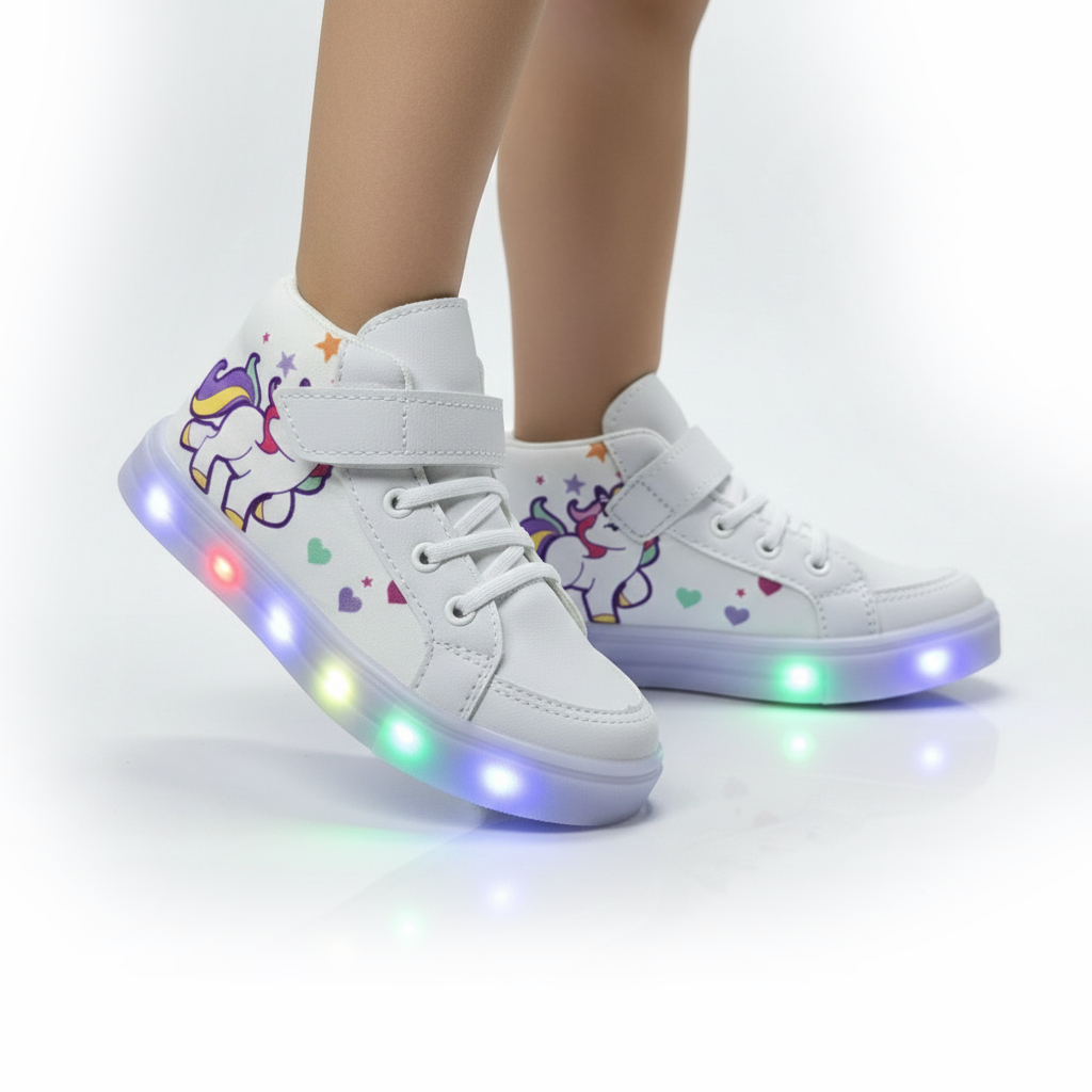 Tênis Feminino Infantil De Led Botinha de Unicórnio Infantil Escolar + Oculos + Relogio