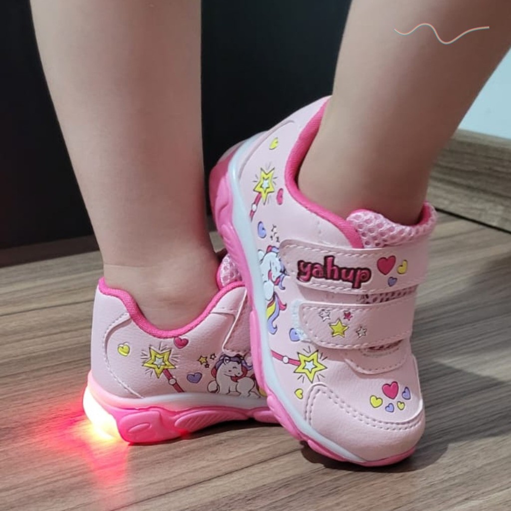 Tenis Feminino Infantil Led Menina Unicórnio Aniversário Macio Leve Escolar Volta Aulas Confortável