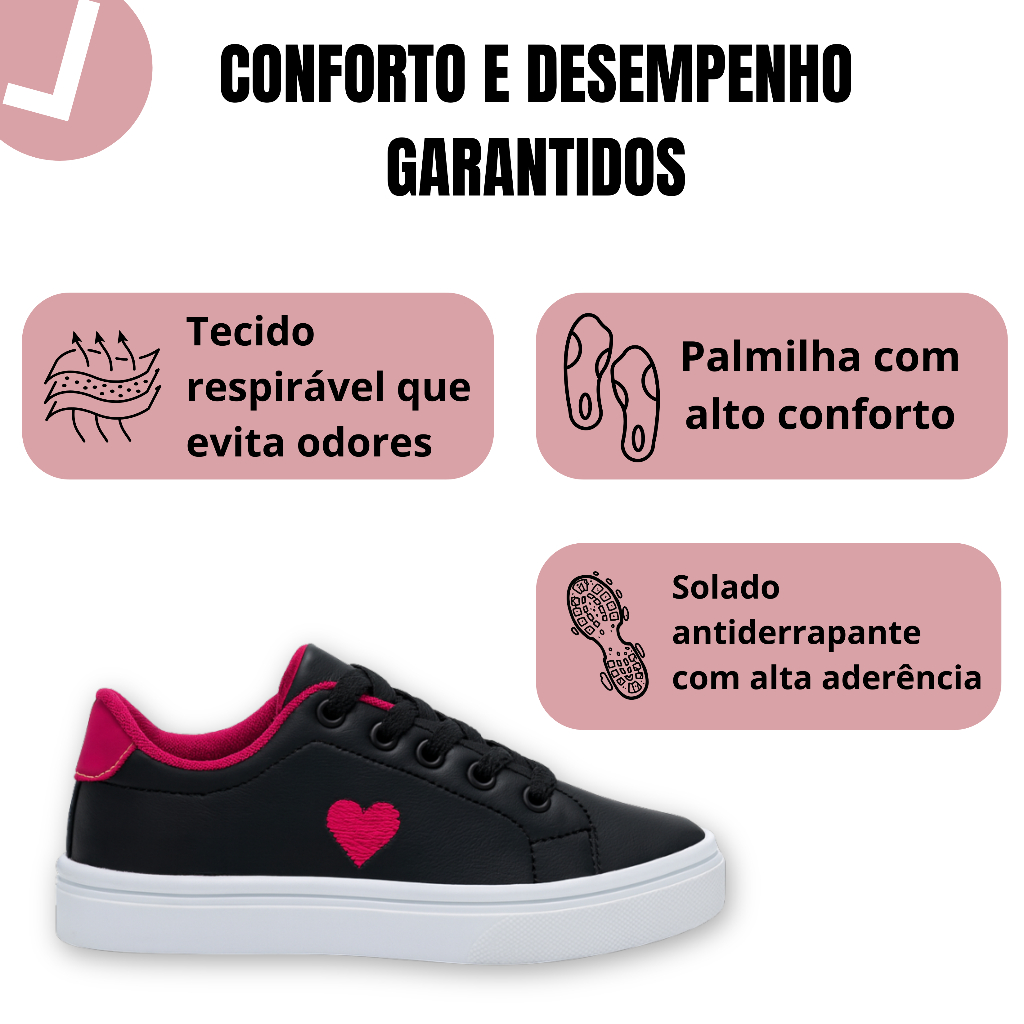 Tenis Feminino Infantil Menina Casual Dia a Dia Confortavel Caminhada