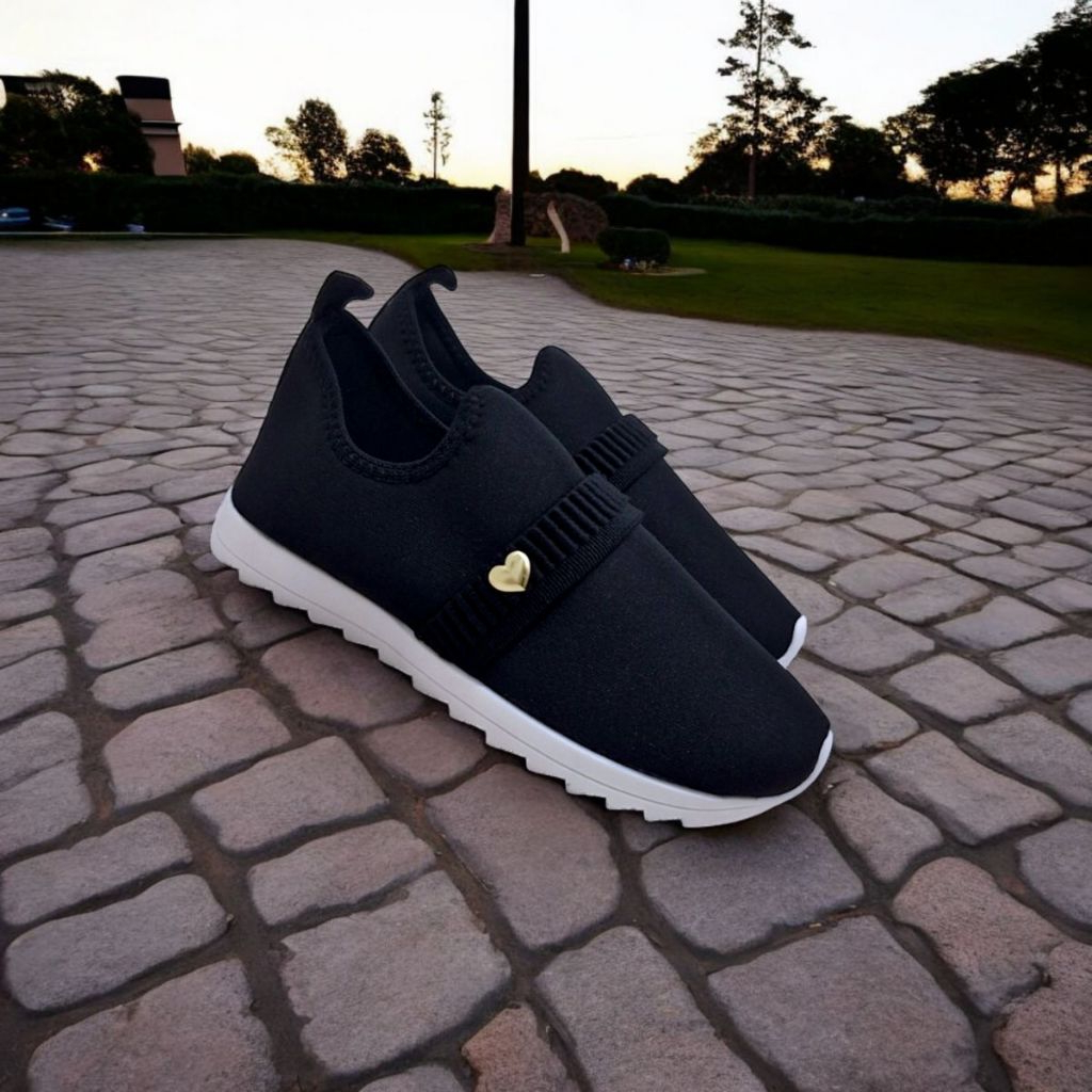 Tênis Feminino Juvenil/Infantil Calce Fácil com Elástico e Pingente Coração Lindo Confortável Loja de Fábrica