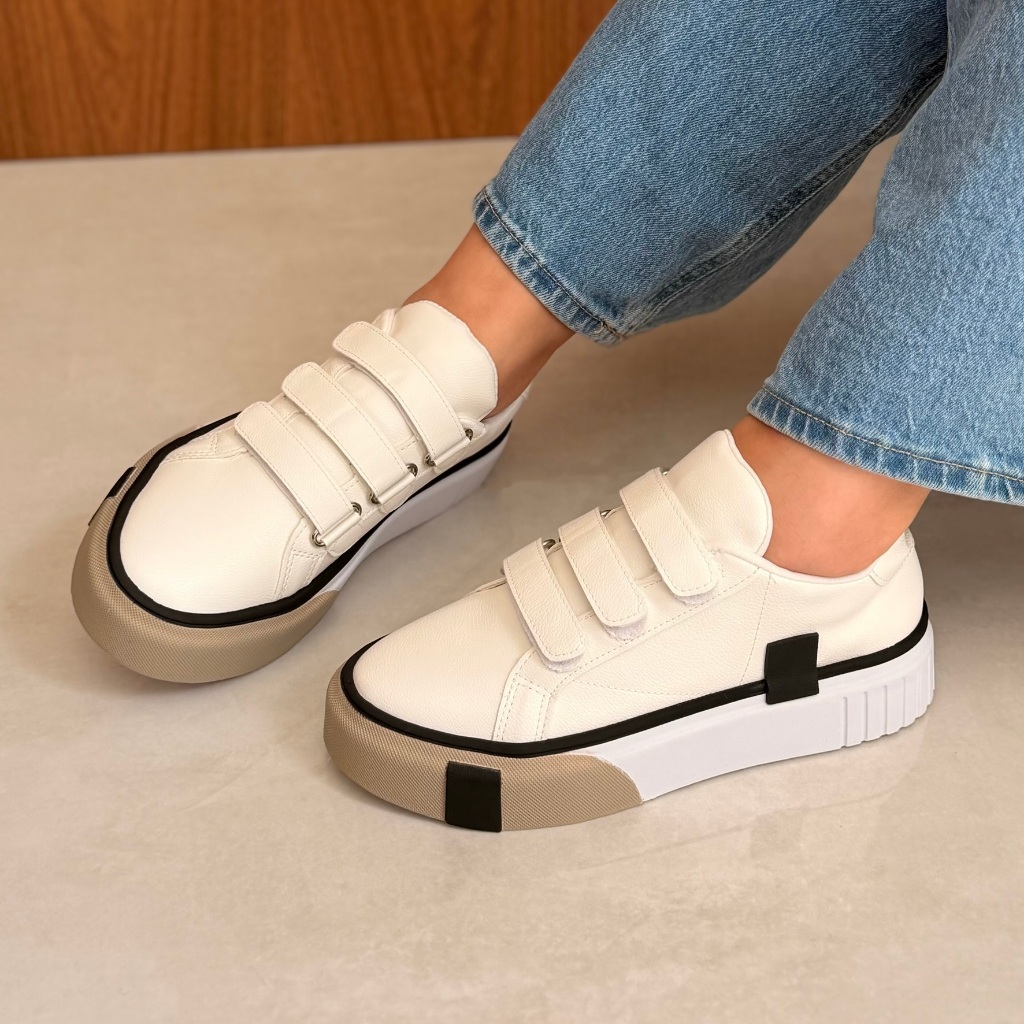 Tênis Feminino Luna Flatform Com Velcro Branco Nude Minimalista, moderno e cheio de personalidade. Com fechamento em velcro e tom nude sofisticado, o Luna combina praticidade e elegância em cada detalhe. Um design leve, versátil e atemporal — perfeito para quem ama conforto sem abrir mão do estilo. ✨
