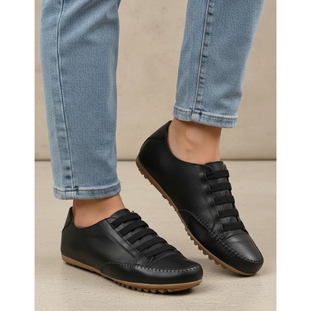 Tênis feminino Mocatênis Couro Legítimo Sapato Casual Com Elástico Calce Fácil