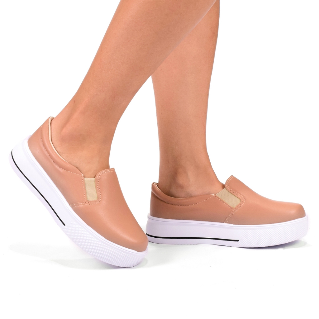 Tênis Feminino Slip On Casual Forrado Elástico Calce Fácil