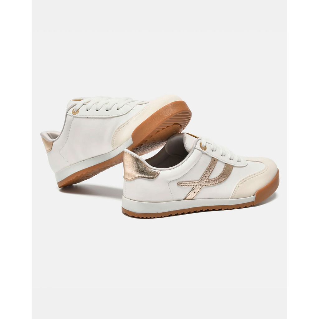 Tênis Feminino Via Marte Casual Sola Reta Branco e Dourado Leve Macio Confortável Original