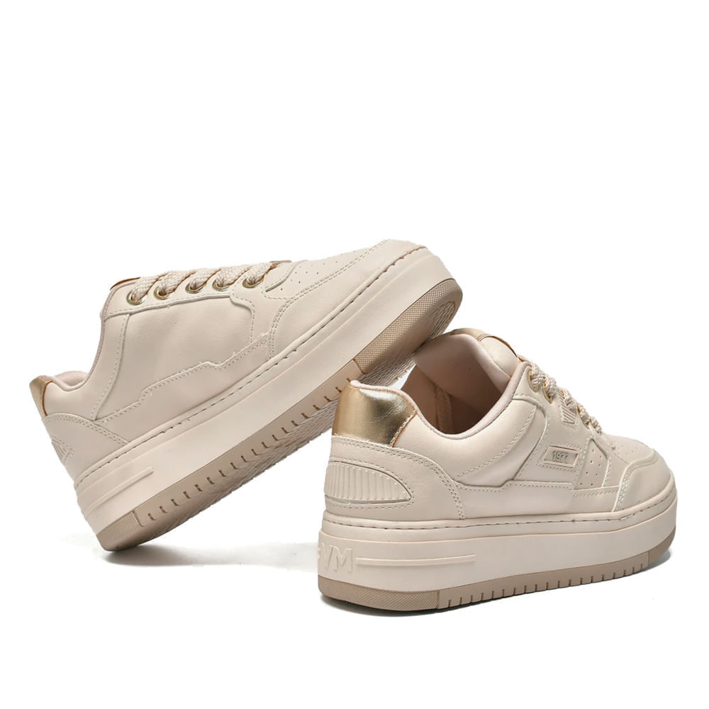 Tênis Feminino Via Marte Napa Casual Off White/Dourado