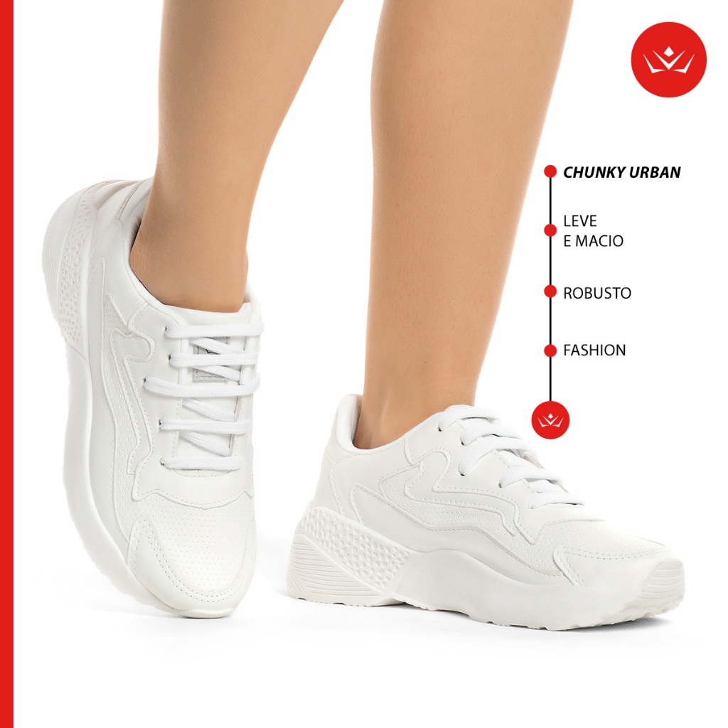 Tênis Feminino Vili Chunk Urban Casual Confortável Branco