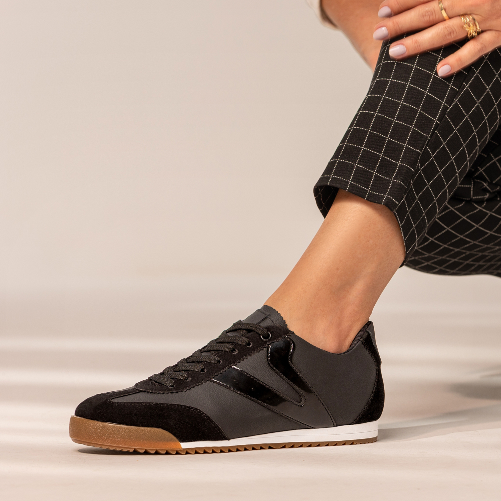 Tênis Feminino Vittal Couro Legítimo Naomi Casual Clássico Retrô Preto
