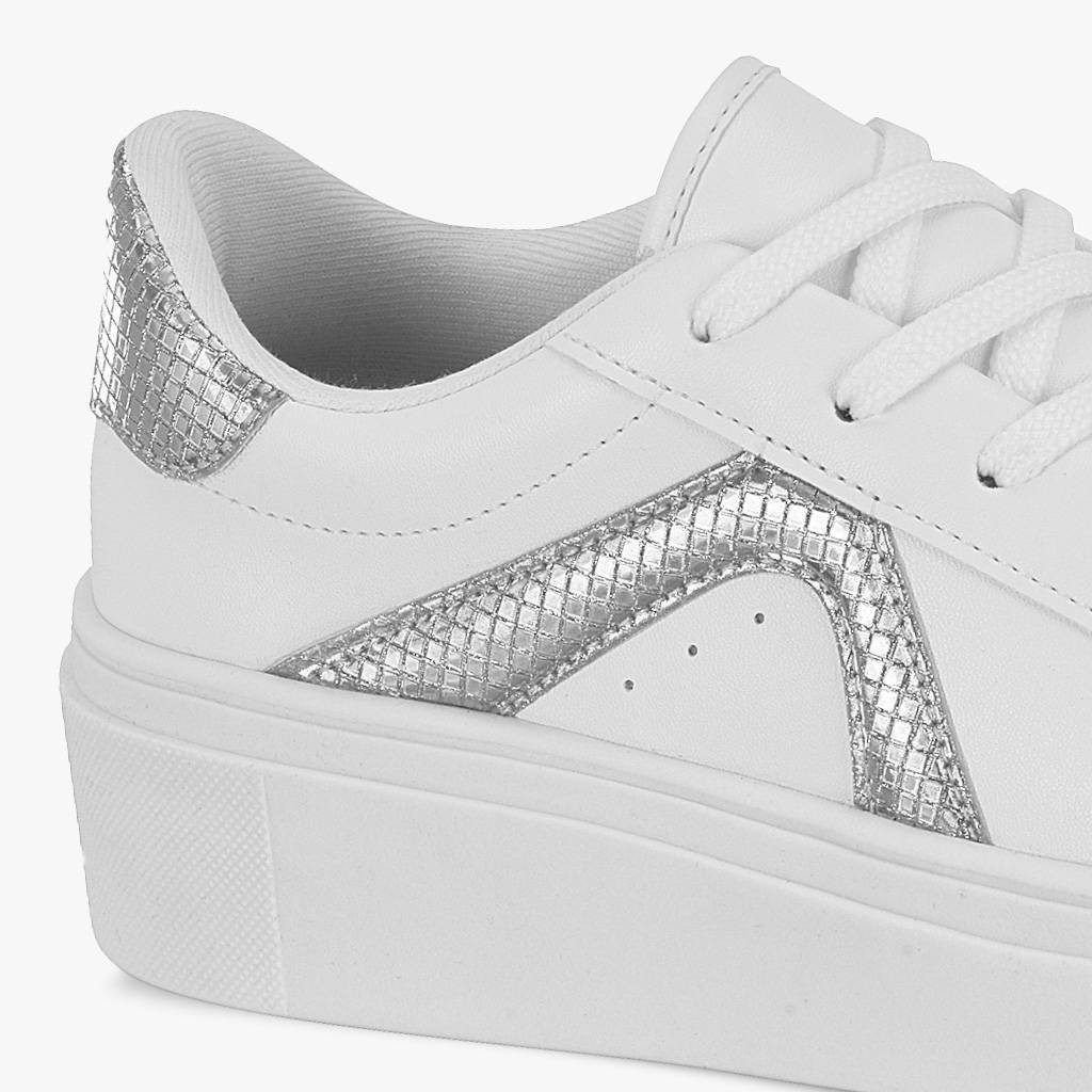 Tênis Feminino Vizzano Casual Plataforma Detalhe Prata Metalizado Cinderela Conforto