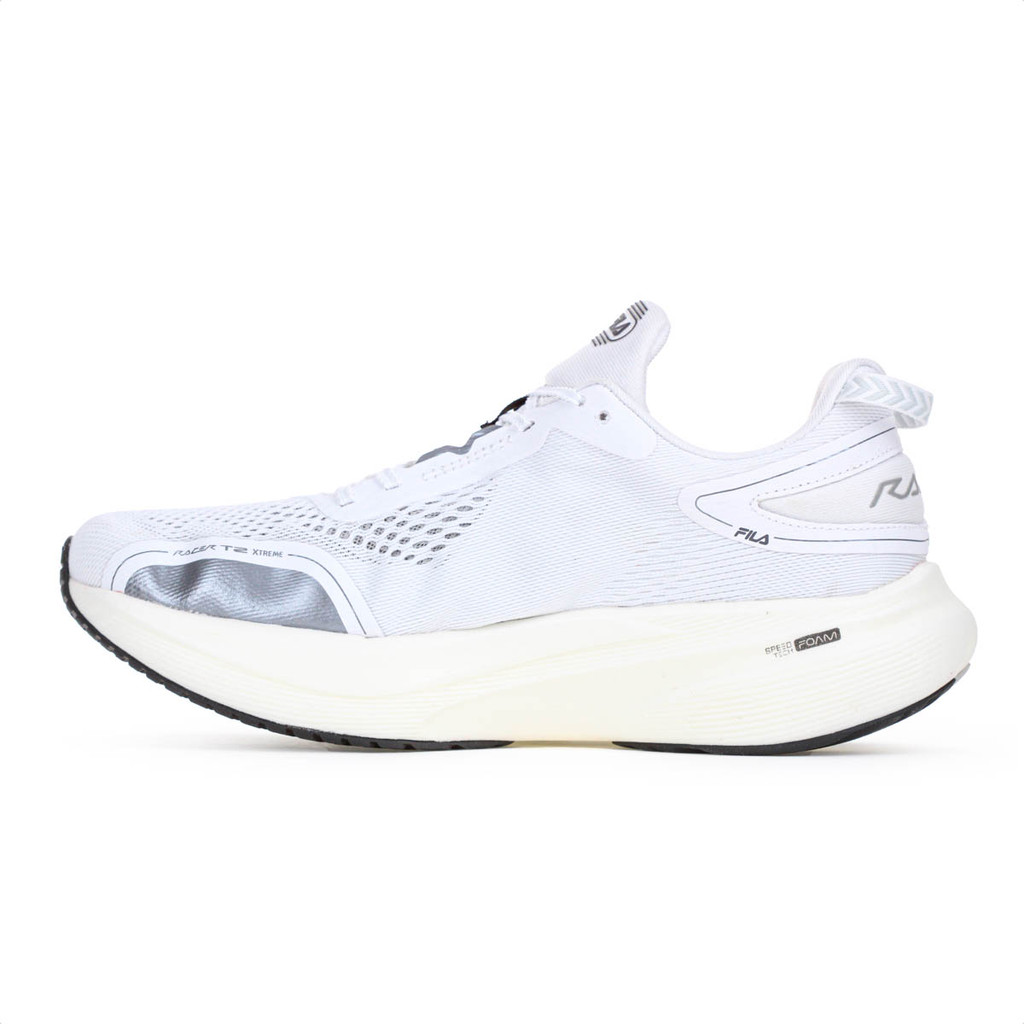 Potência máxima e alta performance em cada quilômetro! Tênis Fila Racer T2 Xtreme Branco Azul e Vermelho - Masculino Ficha Técnica: Marca: Fila Gênero: Masculino Cor: Branco, azul e vermelho Cabedal: 90% têxtil, 10% sintético, com calce fácil, sem costuras internas Fechamento: Dupla amarração (cadarço tradicional + elástico com locker) Palmilha: 90% EVA, 10% têxtil Forro: 100% têxtil Entressola: SPEED TECH FOAM para alta responsividade e durabilidade Placa: Tecnologia SPEED TECH (nylon com fibra de vidro) para máxima propulsão e economia de energia Solado: EVER-GRIP (55% EVA, 45% borracha) Indicação de uso: Corridas, treinos de performance e Triathlon Detalhes: Puxador traseiro e logotipo da marca na lateral Você já se sentiu limitada por um tênis que não acompanha seu ritmo? A falta de resposta nas passadas e o desconforto durante treinos longos podem comprometer sua evolução. Pensando nisso, a Fila desenvolveu o Racer T2 Xtreme, um tênis feito para atletas que buscam desempenho real. Por que investir? Com placa SPEED TECH de fibra de vidro, ele entrega propulsão superior e economia de energia. A entressola SPEED TECH FOAM garante maciez com retorno imediato, enquanto o cabedal sem costuras evita atrito mesmo sem meias. Para facilitar o uso, conta com dois sistemas de amarração, otimizando suas transições em provas. Conteúdo da embalagem: 1 par de Tênis Fila Racer T2 Xtreme Branco Azul e Vermelho - Masculino