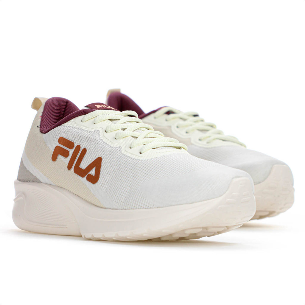 Tênis Fila Vector Creme Bege e Bordô - Feminino