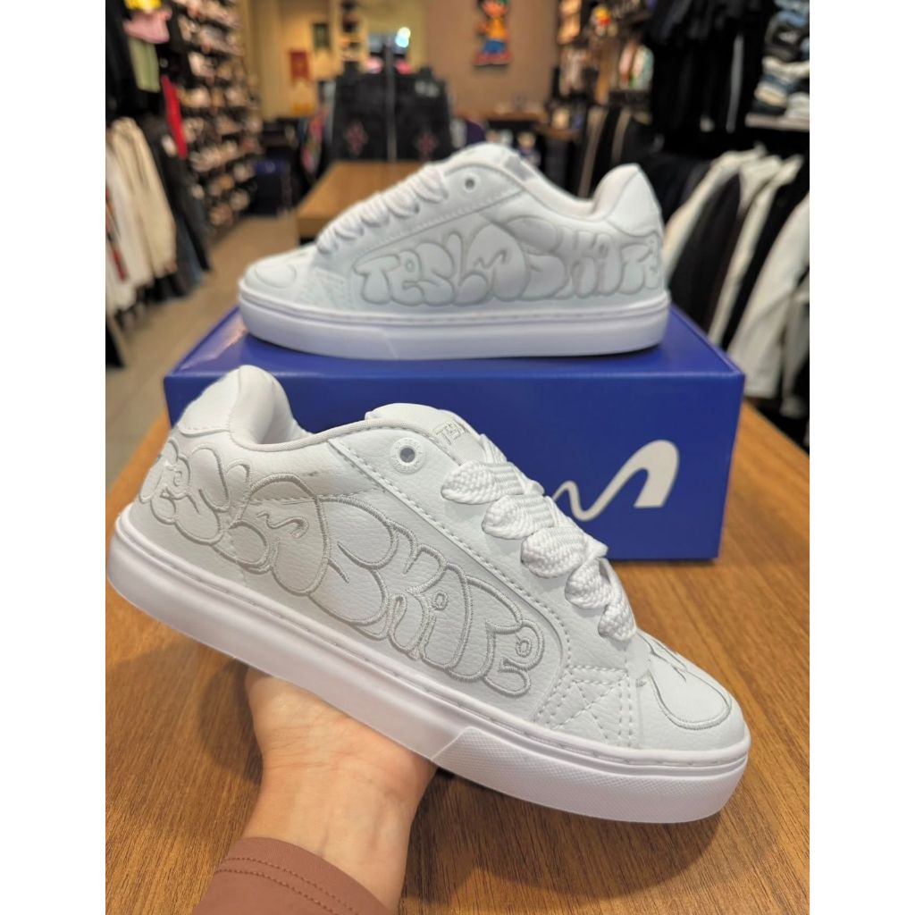 Tênis Tesla Hertz é a escolha ideal para quem busca durabilidade, conforto e um visual autêntico. Inspirado nos clássicos modelos de skate dos anos 90 e 2000, ele combina um design robusto com materiais de alta qualidade, garantindo resistência e performance para o dia a dia ou para sessões intensas de skate. Destaques do Produt o: Cabedal em camurça natural: Resistente e durável, forrado com tecido poliéster de alta qualidade e espuma de alta densidade para maior ajuste e proteção dos pés. Lingueta acolchoada e larga: Garante conforto superior e proteção extra, evitando pontos de pressão durante o uso. Solado de borracha de alta performance: Costura lateral reforçada, proporciona durabilidade e aderência superior em diferentes superfícies. Cadarços Fat Lace: Ajuste firme e seguro, além de um toque diferenciado no visual do tênis. Palmilha em PU com tecnologia de absorção de impacto: Maior conforto e proteção para longos períodos de uso ou manobras de skate. Tênis Tesla Hertz Black ideal para quem busca um tênis estiloso e resistente, perfeito tanto para o skate quanto para o dia a dia.