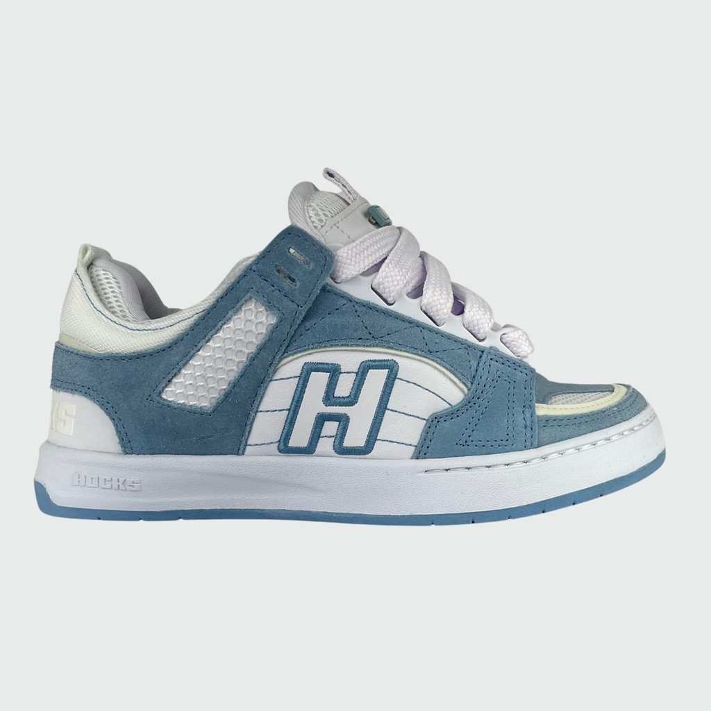 Tênis Hocks Bold Ciel UV É hora de voltar ao passado e viver a essência do skate. Apresentamos o novo tênis da linha vivência: Hocks Bold, um modelo que combina estilo, conforto e uma incrível inspiração nas clássicas silhuetas dos anos 2000. O cabedal é uma verdadeira obra-prima, são mais de 90 peças na sua construção combinando diversos materiais e acabamentos para criar uma estética única e um visual urbano. Cabedal em couro natural com detalhes refletivos, lingueta com bolso mocado, calcanhar conformado e super acolchoado, cadarço fatlace + passadores em T.P.U, solado com duas costuras de borracha + costura de blaque, palmilha FlexForm em P.U termo conformado proporcionando maior conforto e memória, prolongando a durabilidade. Sobre a Marca A Hocks é uma marca de skate brasileira que nasceu em 2002 na cidade de Nova Hamburgo, no Rio Grande do Sul. Seu fundador, Cristiano Senra, é um skatista que começou a desenvolver os produtos com o objetivo de atender às necessidades e ao estilo dos praticantes do esporte. A marca se destaca pela qualidade, tecnologia e design dos seus tênis, roupas e acessórios, que são inspirados na cultura streetwear e no hip hop. A Hocks tem uma equipe de skatistas profissionais e amadores que representam a marca em competições e eventos pelo Brasil e pelo mundo. A marca também apoia projetos sociais e ambientais relacionados ao skate. A Hocks é uma marca de skate feita por skatistas, para skatistas. Produto Original
